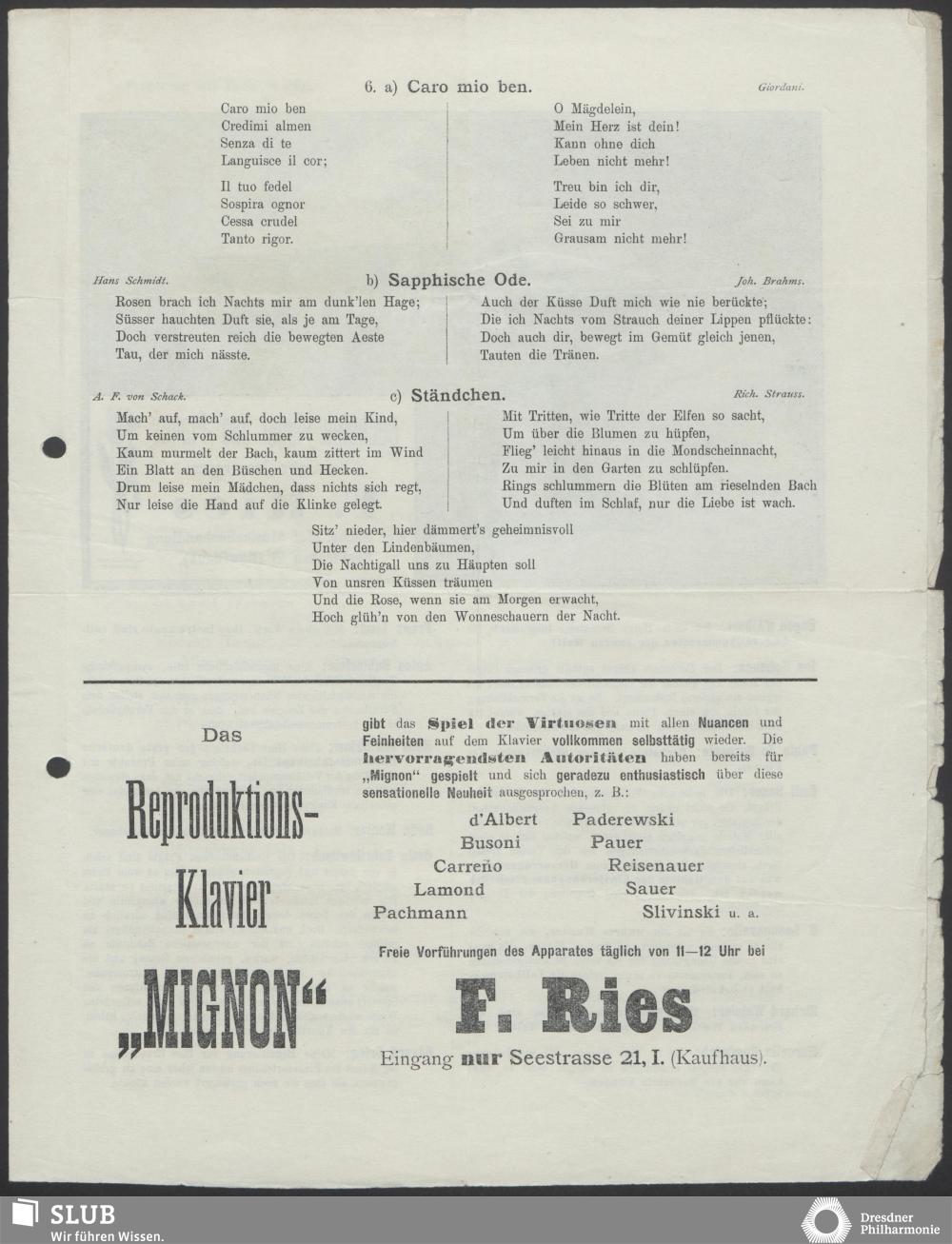 - Lieder, op. 94. Sapphische Ode